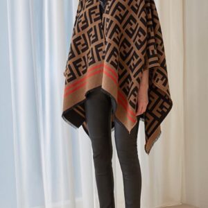 Fendi FF Pancho Wool Silk Blended Jacquard Woven Poncho